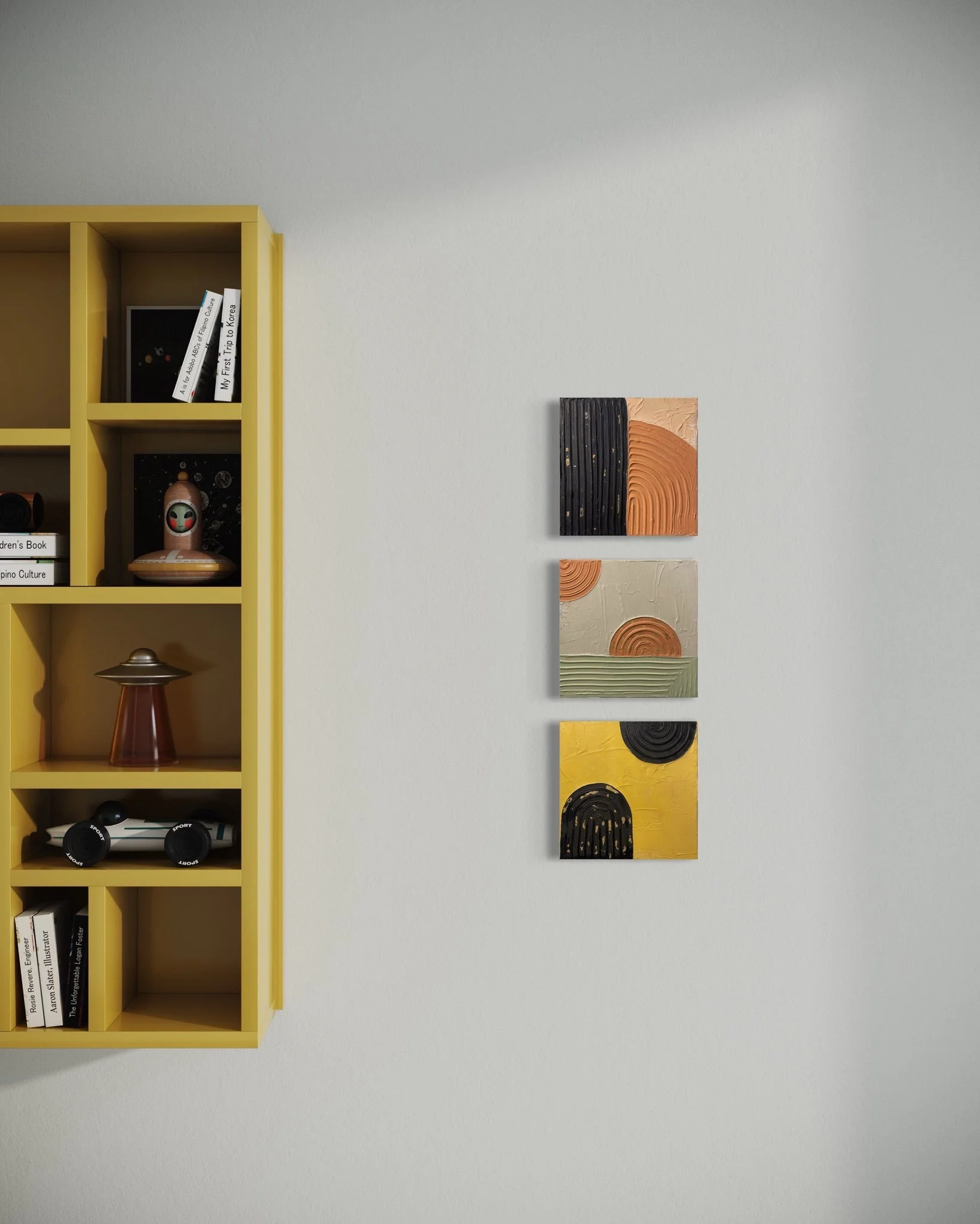 Mixed media, each 8” x 8” on canvas, 3/4” depth.
